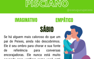 Personalidade, Características e Compatibilidades do pai Pisciano. O Homem de Peixes é altamente criativo, divertido e apaixonado por tudo que faz. Ele vai colocar esta paixão e entusiasmo pela vida no seu estilo de ser pai. E fará tudo que puder para mostrar aos seus [...]